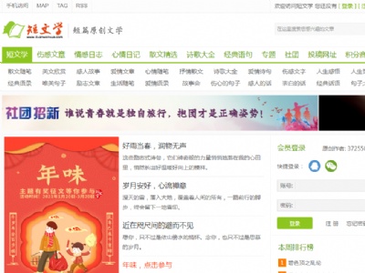 短文學網短文學是一個原創文章的投稿網站,主打原創短篇文學,集傷感文章、情感日志、心情日記、散文精選..